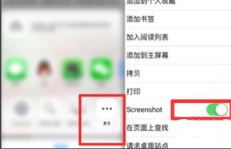 2、選擇三點(diǎn)更多,找到Screenshot,點(diǎn)擊進(jìn)入打開Screenshot開關(guān);