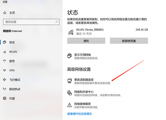 2.點擊“更改適配器選項”;