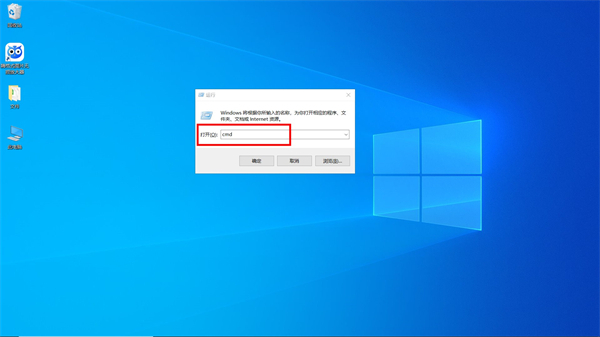 3、在電腦運行窗口界面中,輸入cmd并點擊確定。
