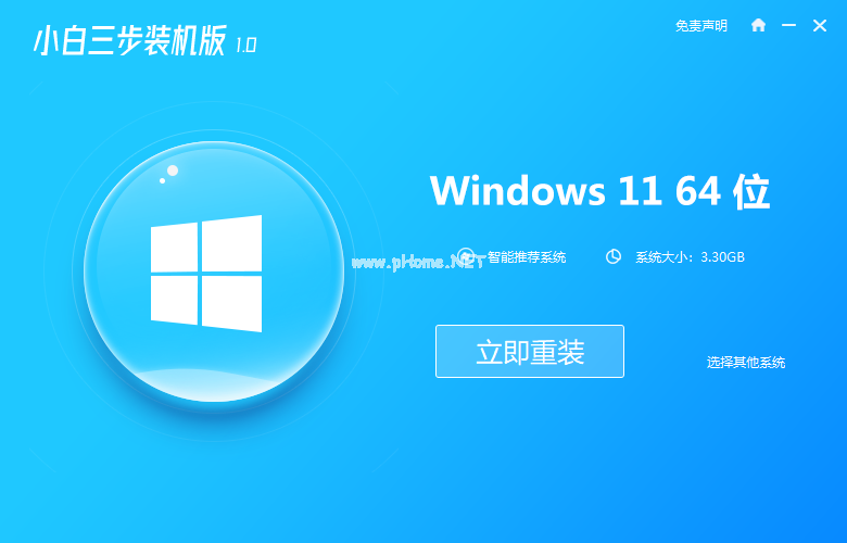 1、在L380電腦上下載小白三步裝機(jī)版軟件,打開小白三步裝機(jī)版軟件,在主頁面上直接選擇立即重裝win11系統(tǒng)。