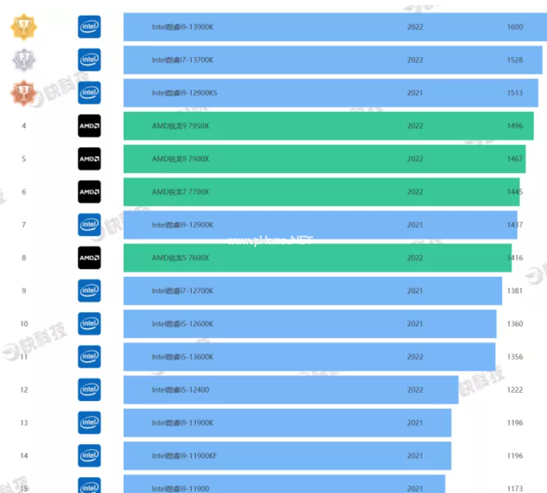 2、排名越靠上的處理器性能越強(qiáng),排在下面的反之。