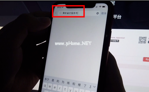 2、點(diǎn)擊搜索圖標(biāo),在搜索框中搜索公眾號(hào)“果粉鑒定服務(wù)號(hào)”。
