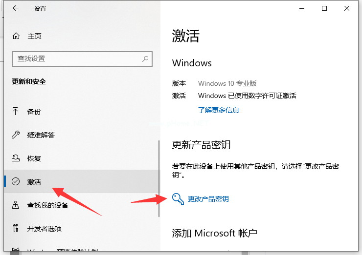 3、選中左邊的激活,再點(diǎn)擊右邊的更改產(chǎn)品密鑰。