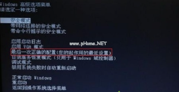 3、還可以嘗試在下圖這個選項中,選擇“最后一次正確的配置”,嘗試藍屏問題是否修復(fù)解決。