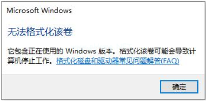 2、此時(shí)將會(huì)彈出無法格式化改卷。