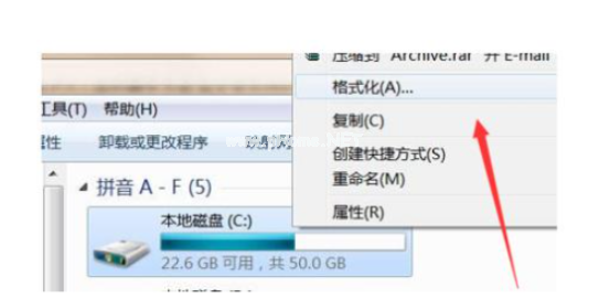 2、打開我的電腦,右鍵C盤分區(qū)上,選擇格式化。