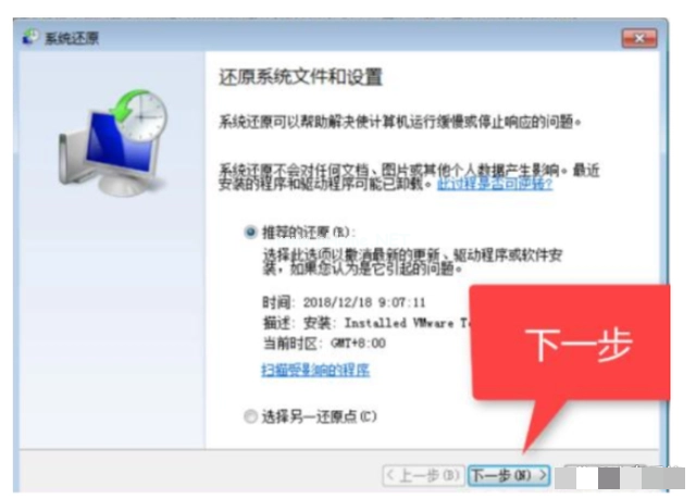 5、選擇推薦的還原,并按照提示執(zhí)行下一步,操作前請先備份系統(tǒng)。