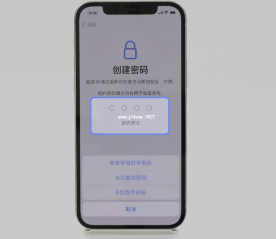 6、這里提示需要設(shè)置手機(jī)密碼,就是手機(jī)鎖屏密碼,這個(gè)非常重要,今后解鎖手機(jī)都要用到這個(gè)密碼,一定要設(shè)置自己能記住的。默認(rèn)是 6 位數(shù)密碼,如果不使用Apple Pay或公交卡,也可以選擇使用更簡單的4位數(shù)密碼。