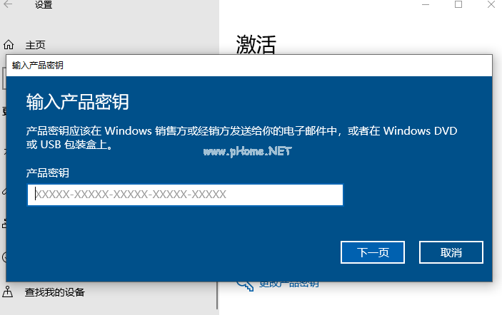 4.輸入windows10激活密鑰,點擊下一步執(zhí)行激活即可成功激活。