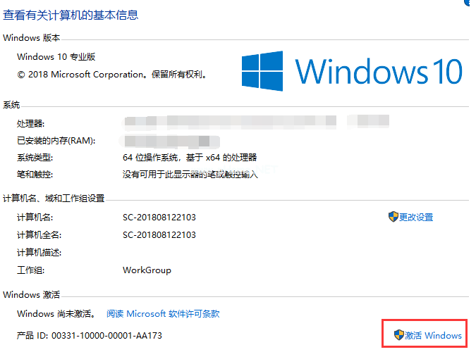 2、來到計算機屬性的界面之后,下拉到右下角找到“激活Windows”,并鼠標(biāo)點擊打開。