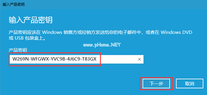 4、提前將上面提供的密鑰激活碼復(fù)制好粘貼進去,并鼠標(biāo)點擊下一步。