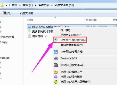 2、鼠標(biāo)右鍵選擇以管理員的身份運(yùn)行KMS Activator Mini.exe。