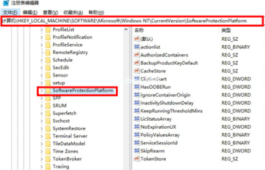 2、在注冊表文件中找到【SoftwareProtectionPlatform】文件。