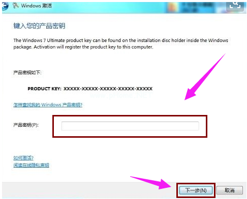 2、接著在彈出的激活輸入框中輸入windows7激活碼