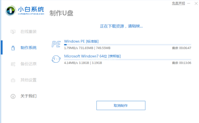 4、電腦此時將會開始下載系統(tǒng)包和制作工具,期間不建議大家操作電腦哦。
