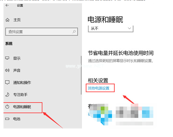 9、鼠標(biāo)點(diǎn)擊左側(cè)的電源與睡眠,點(diǎn)擊右邊的其它電源設(shè)置。