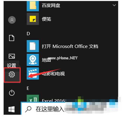 7、再返回主頁(yè)界面,再桌面的左下角找到開(kāi)始菜單欄打開(kāi),找到設(shè)置并點(diǎn)擊打開(kāi)。