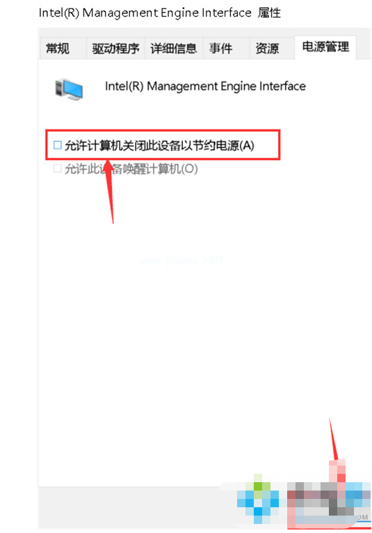 6、在電源管理的界面我們需要取消允許計(jì)算機(jī)關(guān)閉此設(shè)備以節(jié)約電源勾選,鼠標(biāo)點(diǎn)擊確定。