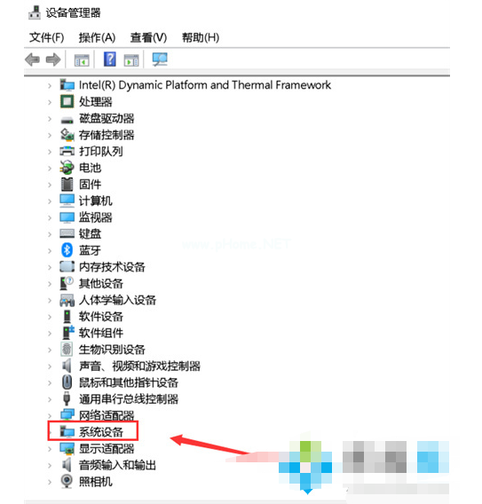 3、然后在設(shè)備管理器里展開(kāi)系統(tǒng)設(shè)備。