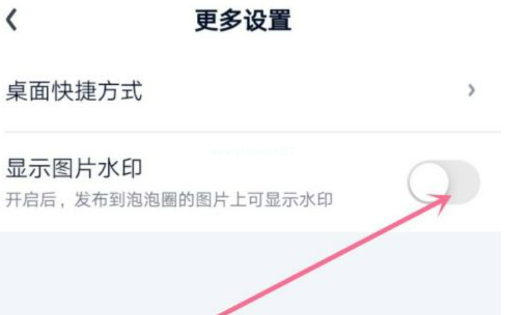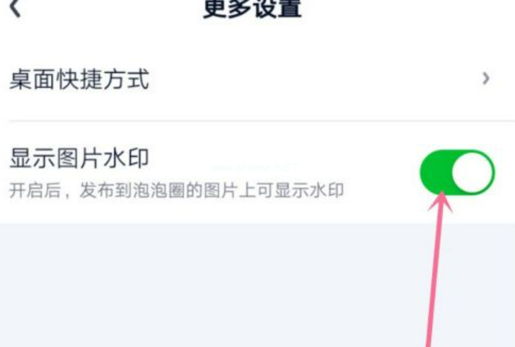 3、切換到更多設置的頁面板,顯示圖片水印選擇“開關”按鈕;