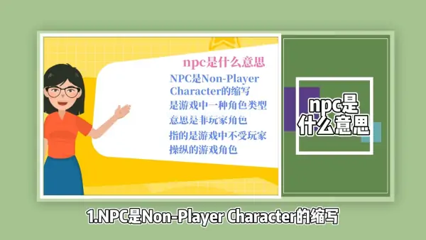 1.NPC是Non-Player Character的縮寫,是游戲中一種角色類型,意思是非玩家角色,指的是游戲中不受玩家操縱的游戲角色,這個(gè)概念最早源于單機(jī)游戲,后來這個(gè)概念逐漸被應(yīng)用到其他游戲領(lǐng)域中。