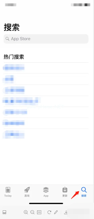 4、進(jìn)入App Store界面后,點(diǎn)擊搜索。