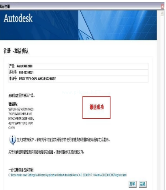 6、最終激活成功,點(diǎn)擊完成。在此進(jìn)入軟件后AutoCAD2008就可以運(yùn)行了。