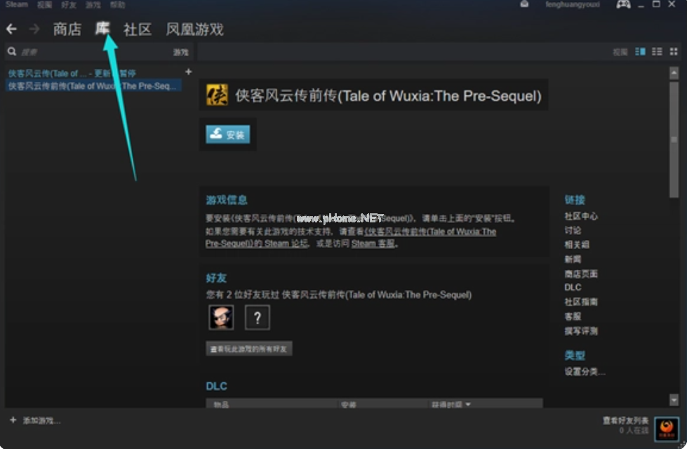 7、點擊steam中的庫,選擇游戲,找到激活的游戲點擊下載即可自動完成下載安裝。