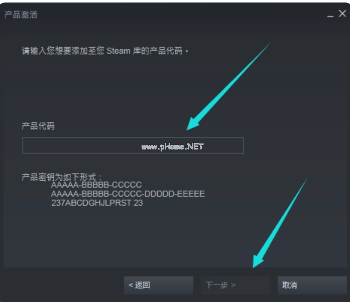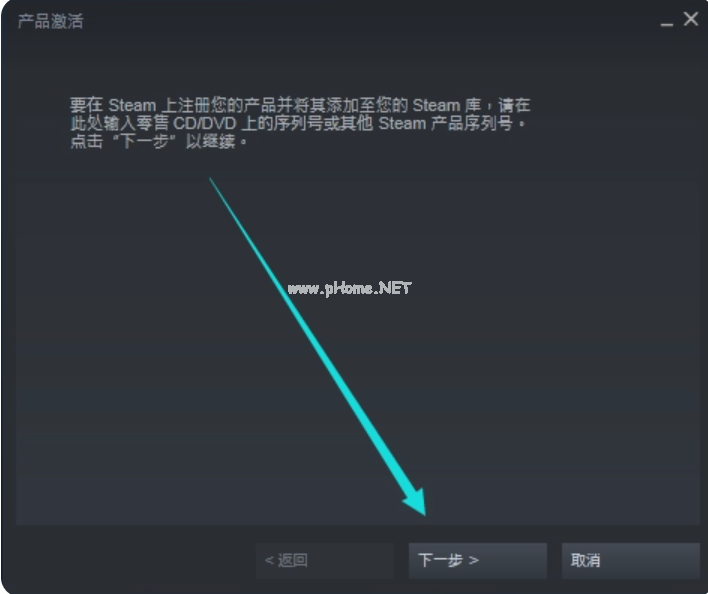 3、最后,在激活頁面,輸入游戲cdk,點擊下一步,即可激活游戲。