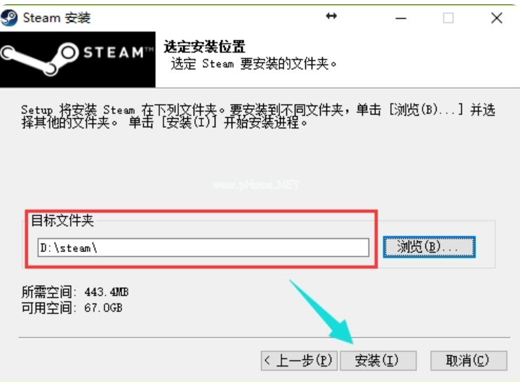④選擇目標(biāo)文件夾,最好在硬盤根目錄建立新文件夾“steam”