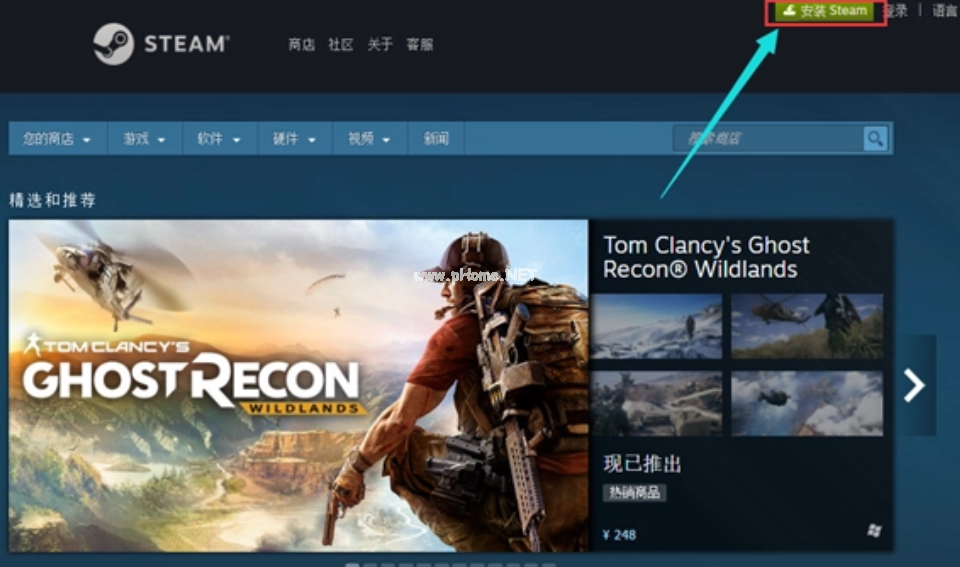 2、接下來會跳轉(zhuǎn)到下載頁面,點擊“立即安裝Steam”按鈕繼續(xù)。