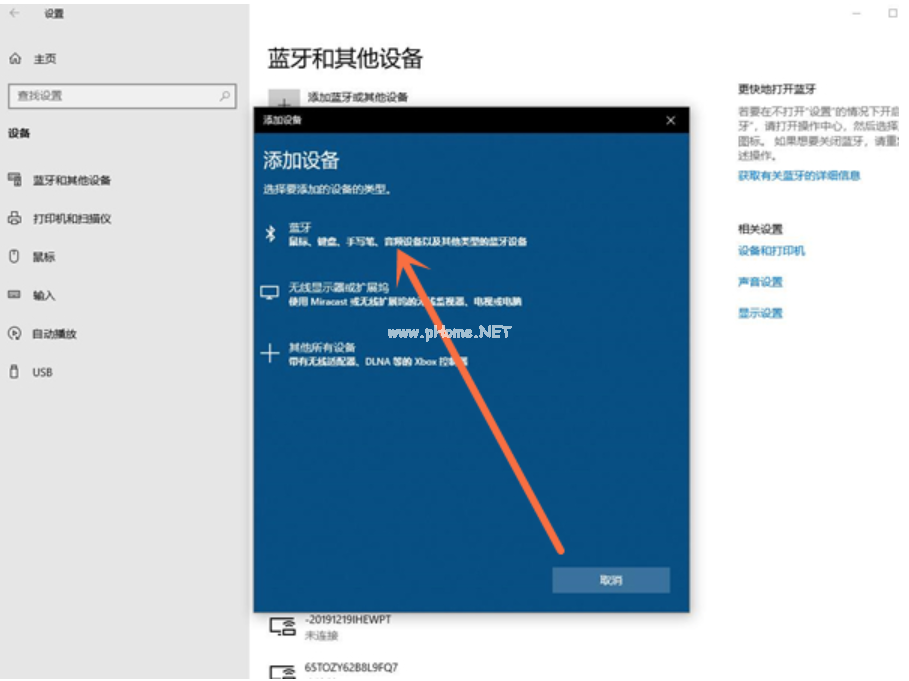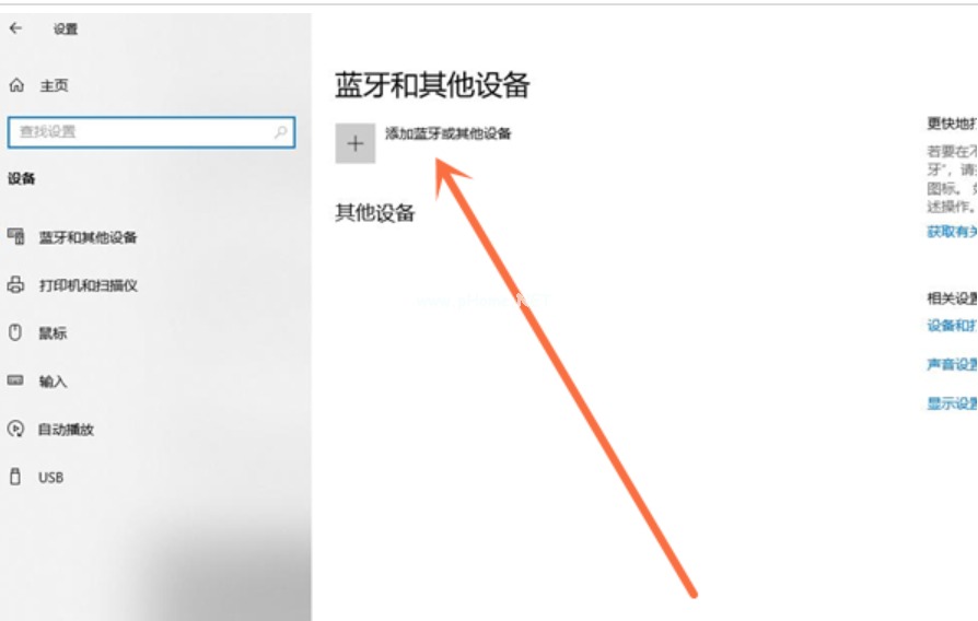 3、點(diǎn)擊添加藍(lán)牙和其他設(shè)備。