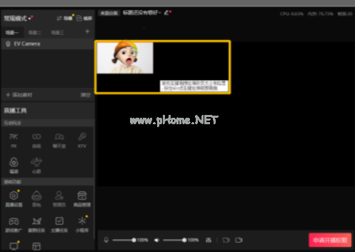 7、嵌入EV虛擬攝像頭,并錄制顯示器進(jìn)行直播的效果。