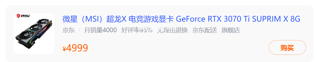 2、微星(MSI)超龍X GeForce RTX 3070 Ti SUPRIM X 8G 電競游戲 電腦獨立顯卡