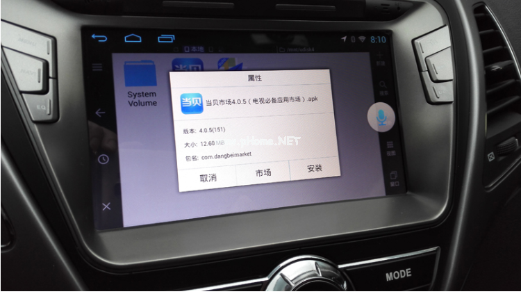 二、打開車載導航自帶的ES文件瀏覽器,找到U盤內(nèi)下載好的當貝市場apk,點擊并確認安裝即可;