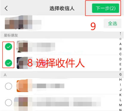7.選擇我們要群發(fā)的人,然后點(diǎn)擊下一步;