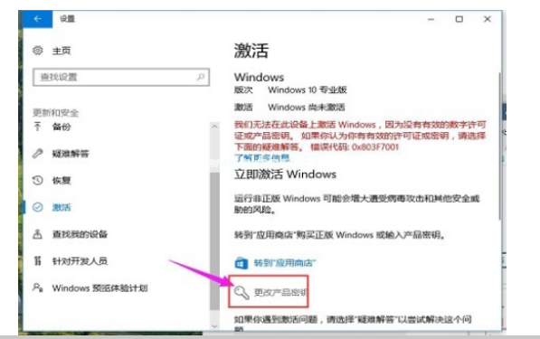 3、找到“激活”點擊,然后選擇右下角的“更改產(chǎn)品密鑰”。