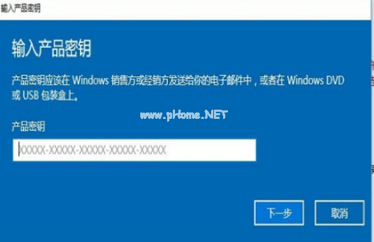 4、根據(jù)系統(tǒng)版本,選擇輸入上面的密鑰,再點擊"下一步",等待激活成功即可。