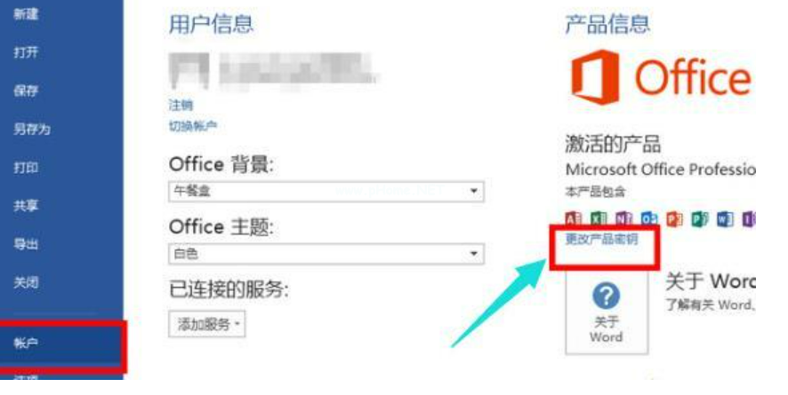 2.點擊下方賬戶,在右側(cè)選擇更改產(chǎn)品密鑰。