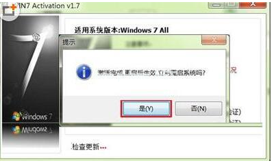 4、系統(tǒng)激活完成后,軟件會彈出提示框提示激活完成,需要重啟電腦后才能生效。