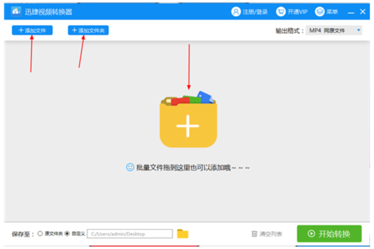 1.打開視頻轉(zhuǎn)換器,在界面的左上角選擇“添加文件”把要轉(zhuǎn)換格式的視頻添加進(jìn)去。(“添加文件夾或點(diǎn)擊中間區(qū)域可以批量添加文件進(jìn)行格式轉(zhuǎn)換”)