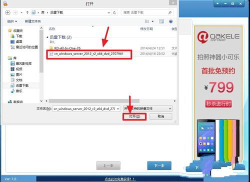 然后就會進入“第一步:選擇要刻錄的映像文件”界面,按箭頭指示單擊以選擇要刻錄的映像文件。映像文件裝載好后,單擊“下一步”