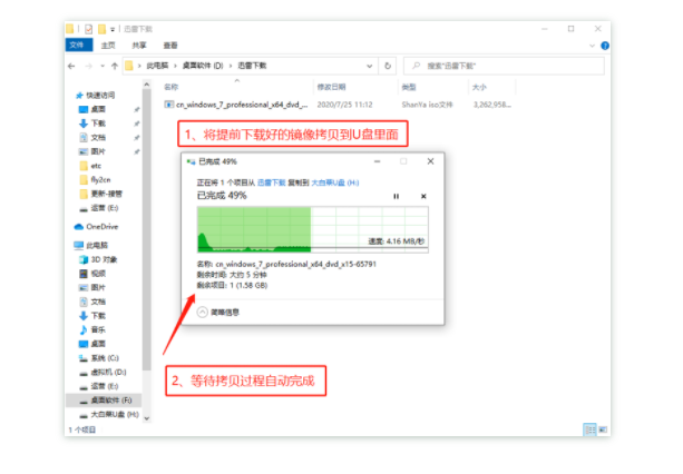 8.下載完成后,找到下載好的WIN7 ISO/GHO鏡像拷貝到U盤目錄,由于ISO/GHO文件通常都比較大,可能需要等待5~10分鐘。