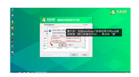 第六步:勾選windows7系統(tǒng)的網(wǎng)卡和usb驅(qū)動(dòng)安裝(默認(rèn)安裝也可以),再點(diǎn)擊“是”。