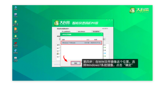 第四步:在WIM文件鏡像這個(gè)位置,選擇windows7系統(tǒng)鏡像,點(diǎn)擊“確定”。