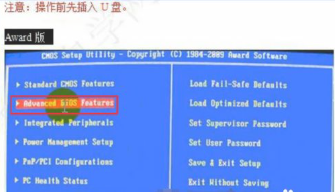 2、在BIOS SETUP設(shè)置程序里找到高級(jí)BIOS特性設(shè)置Advanced BIOS Features。(以Award BIOS為例,絕大部分的主流版本,其它版本的與此類似)。