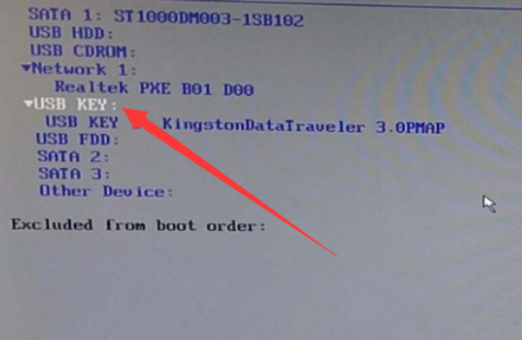 3、將usb key移動(dòng)到最上面,按F10保存。