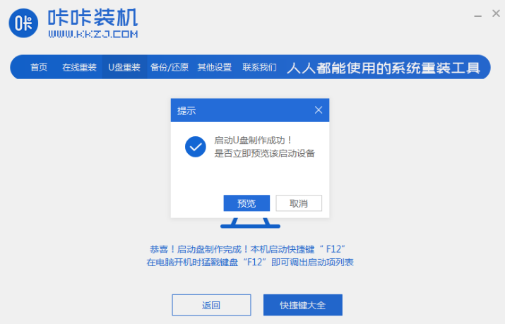 3、等待軟件制作u盤啟動(dòng)盤成功后,記住電腦主板的啟動(dòng)熱鍵,然后再拔除u盤退出。