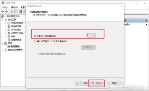 10. 然后到設(shè)置驅(qū)動(dòng)器號(hào)界面,自行給u盤劃分好驅(qū)動(dòng)器盤符,點(diǎn)擊“下一步”(注意是系統(tǒng)磁盤沒用過的盤符),繼續(xù)設(shè)置格式化操作,選擇“下一步”。