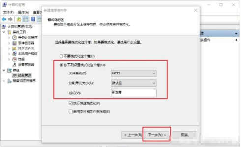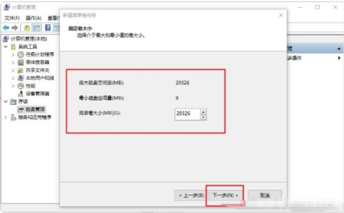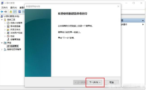 9. 在彈出的新建卷向?qū)Ы缑?,點(diǎn)擊“下一步”,然后確認(rèn)簡(jiǎn)單卷大小,再次點(diǎn)擊“下一步”。